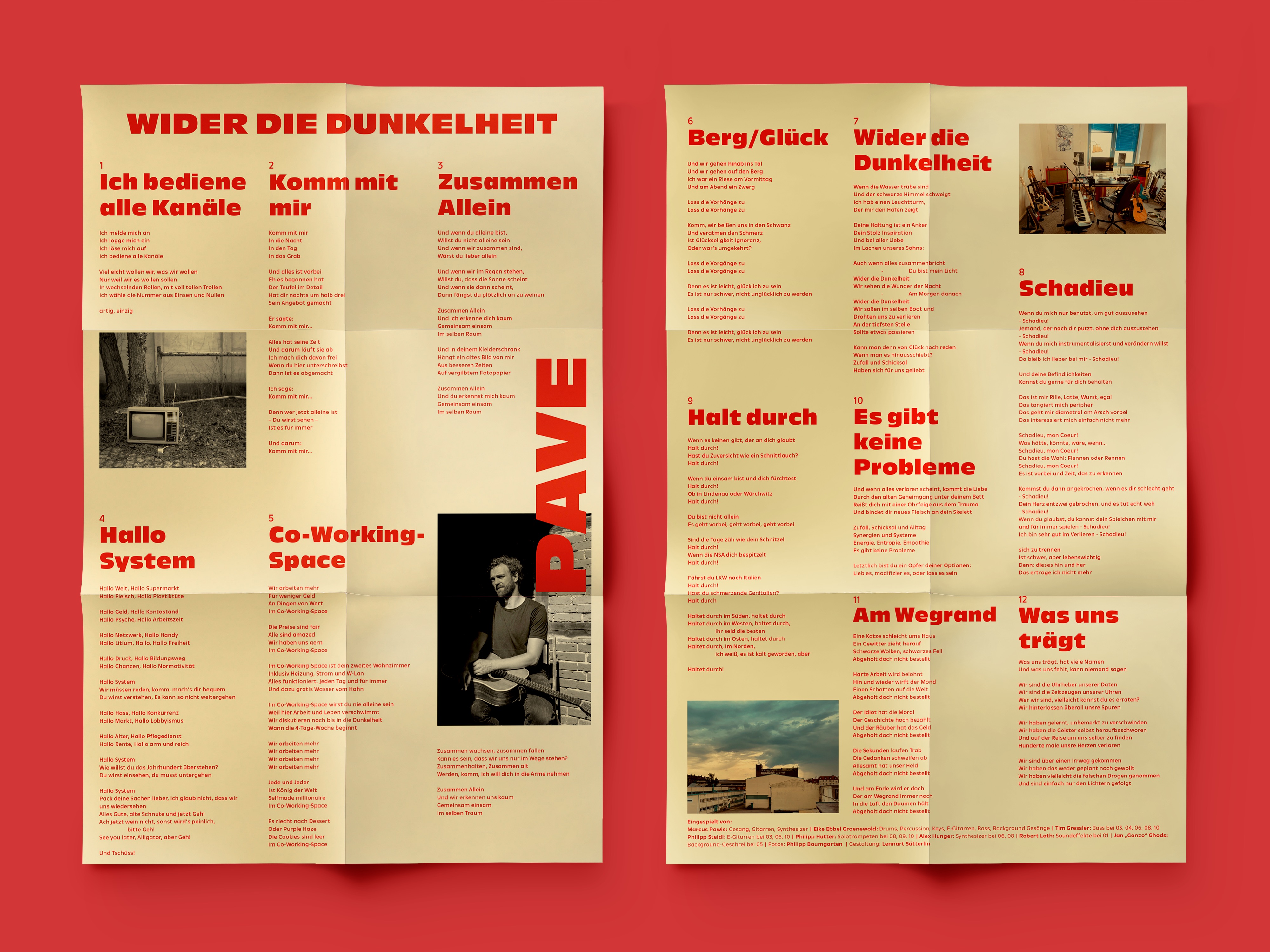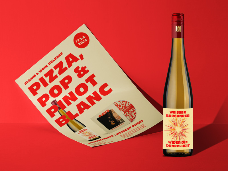 Gestaltung des ersten Solo-Albums "Wider die Dunkelheit" von Marcus Pawis, alias "Pave". Dazu kommt eine exklusive Sonderedition des von Christian Pawis ausgesuchten Weins zum Album: der "Weisse Burgunder | Wider die Dunkelheit" vom Weingut der Familie.